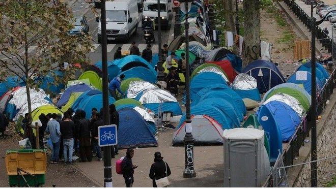 Κατά μήκος των πολύβουων λεωφόρων και σε ένα κανάλι στο βορειανατολικό τμήμα της γαλλικής πρωτεύουσας, εκατοντάδες σκηνές έχουν στηθεί από μετανάστες- κυρίως Αφρικανούς που υποστηρίζουν ότι είναι από το Σουδάν- οι οποίοι έχουν τοποθετήσει χαρτόκουτα στο έδαφος για να μπορέσουν να ανταπεξέλθουν στο φθινοπωρινό κρύο.