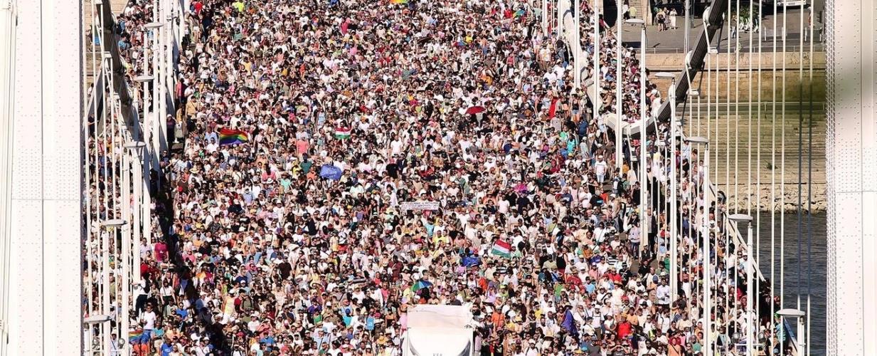 Με πολύχρωμες σημαίες, πλακάτ, μπαλόνια και συνθήματα γραμμένα ακόμα και στο ίδιο τους το σώμα χιλιάδες διαδηλωτές όλων των ηλικιών πραγματοποίησαν πορεία στο κέντρο της πόλης, υπερασπιζόμενοι τα δικαιώματα της ΛΟΑΤΚΙ+ κοινότητας, η οποία βρίσκεται στο στόχαστρο του ακροδεξιού πρωθυπουργού της χώρας.