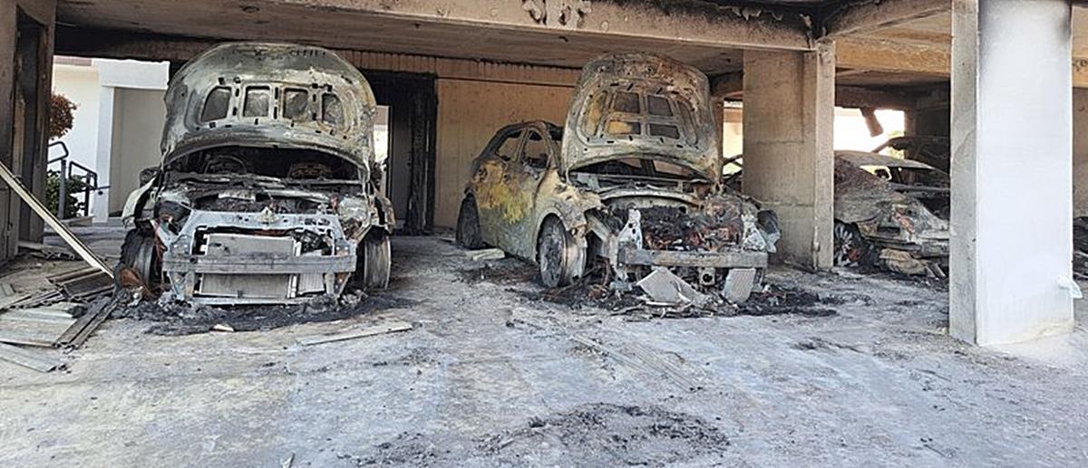 Η φωτιά, η οποία κατασβέστηκε από την Πυροσβεστική Υπηρεσία, κατέστρεψε ολοσχερώς πέντε οχήματα, άλλα δυο υπέστησαν ζημιές ενώ ζημιές προκλήθηκαν και στην τοιχοποιία της πολυκατοικίας.