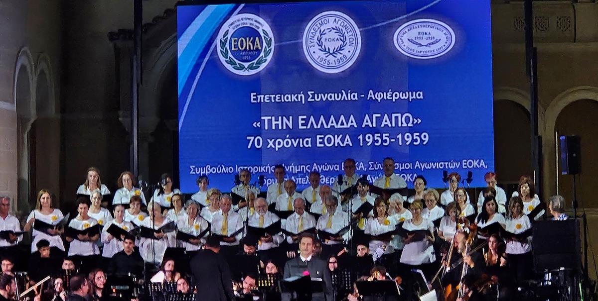 «Συγχαίρω για ακόμη μία φορά τους εμπνευστές, τους διοργανωτές, τους υποστηρικτές και τους συντελεστές της μοναδικής αυτής συναυλίας. Μιας συναυλίας που θα ξυπνήσει μνήμες του ένδοξου Αγώνα της ΕΟΚΑ και θα εντείνει τον πόθο της αποκατάστασης της δικαιοσύνης στο πολύπαθο νησί μας. Εύχομαι σύντομα, ανάλογες πρωτοβουλίες να λαμβάνουν χώρα στην επανενωμένη Λευκωσία, η οποία θα αναπνέει όπως και οι υπόλοιπες πρωτεύουσες της Ευρώπης ελεύθερο αέρα», κατέληξε.