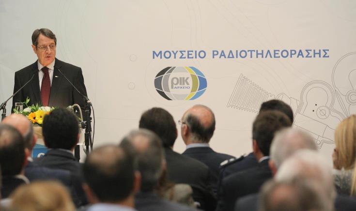 Μιλώντας στα εγκαίνια του Μουσείου Ραδιοτηλεόρασης του ΡΙΚ, ο Πρόεδρος Αναστασιάδης ευχήθηκε «να είναι η απαρχή σήμερα, έτσι όπως το φαντάζομαι, που το ΡΙΚ ακούεται παντού, να ακούεται ο κάθε ραδιοφωνικός σταθμός παντού σε όλη την Κύπρο αλλά με τον ίδιο τρόπο ροής να είναι και η πορεία των πολιτών μας, ελεύθερα να διακινούνται, ελεύθερα να εγκαθίστανται, ελεύθερα να πιστέψουν επιτέλους σε αυτή την πατρίδα».