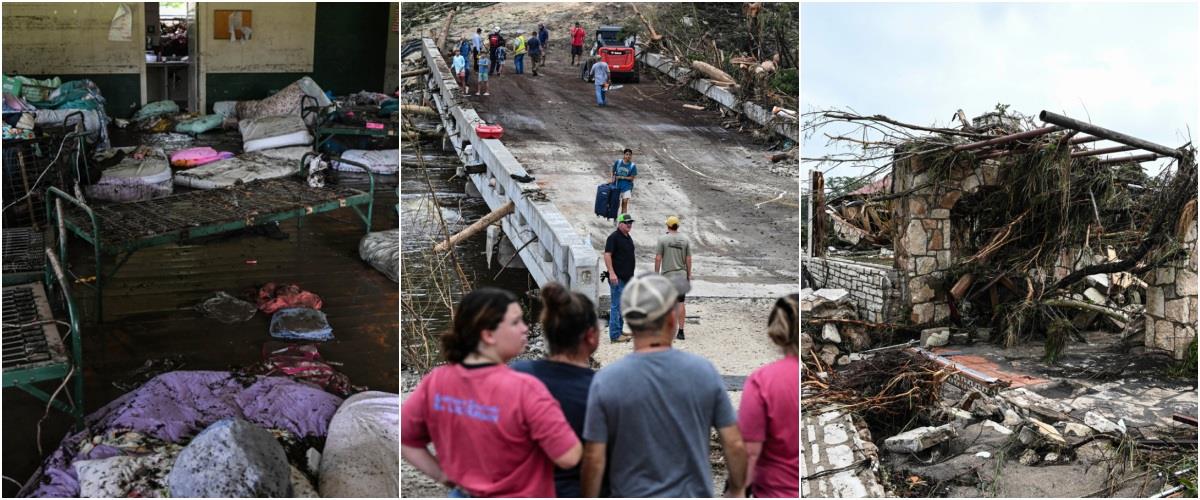 Στον χώρο του Camp Mystic το νερό είχε υποχωρήσει σε μεγάλο βαθμό χθες, αποκαλύπτοντας τις τεράστιες καταστροφές, με αυτοκίνητα να έχουν αναποδογυρίσει ή παρασυρθεί από τα νερά και κάποια να είναι σφηνωμένα σε δέντρα. Οι χώροι όπου φιλοξενούνταν τα κορίτσια έχουν καταστραφεί, το πάτωμα είναι καλυμμένο από λάσπη και τα τζάμια έχουν σπάσει από την ορμή του νερού.