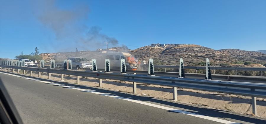 Όχημα τυλίχθηκε στις φλόγες στον αυτοκινητόδρομο-Έκλεισαν οι δύο λωρίδες κυκλοφορίας (pic)