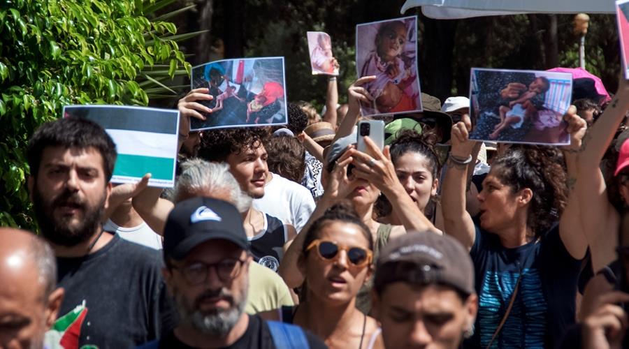 Ακούστηκαν συνθήματα υπέρ της Παλαιστίνης, όπως «Δεν υπάρχει ειρήνη χωρίς δικαιοσύνη – Λευτεριά στην Παλαιστίνη» και «Ούτε στη Ρόδο, ούτε πουθενά – με την Παλαιστίνη ως τη λευτεριά».