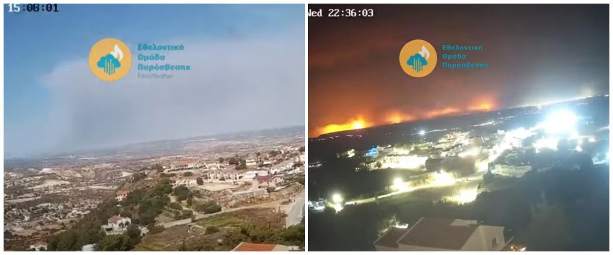 Ένα συγκλονιστικό βίντεο που καταγράφει την πορεία της πυρκαγιάς που κατέκαψε 100 τετραγωνικά χιλιόμετρα γης, ανήρτησε η σελίδα Kitasweather, αποτυπώνοντας τον πύρινο όλεθρο.