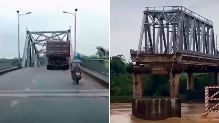 Τα πλάνα που κατέγραψε η κάμερα στο ταμπλό ενός αυτοκινήτου δείχνουν τη σοκαριστική στιγμή της κατάρρευσης της γέφυρας Phong Chau εχθές, Δευτέρα. Πολλά οχήματα που βρίσκονταν πάνω στη γέφυρα όταν κόπηκε στα δύο έπεσαν στο νερό και 13 άνθρωποι αγνοούνται, σύμφωνα με το BBC.