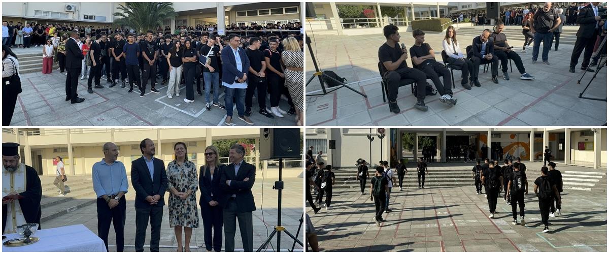Μετά την συγκέντρωση στο προαύλιο του σχολείου, όπου είχε πραγματοποιηθεί ο καθιερωμένος αγιασμός από τον πατέρα Παρασκευά, ο διευθυντής του σχολείου θέλησε να ευχαριστήσει τόσο το Νίκο Χριστοδουλίδη, όσο και την Αθηνά Μιχαηλίδου για την παρουσία τους στην Τεχνική Σχολή, ενώ έκανε ιδιαίτερη μνεία στο σχολείο των Κεντρικών Φυλακών, που υπάγεται σε αυτούς και σημείωσε πως οι μαθητές του, προσέφεραν πέντε παγκάκια για το σχολείο.