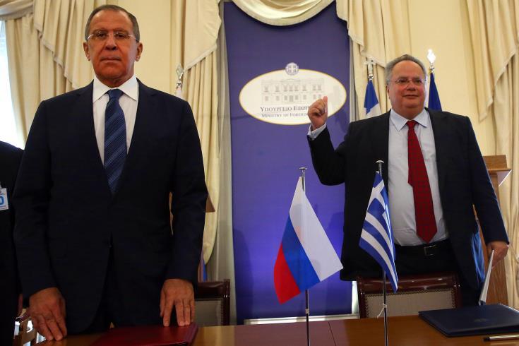 Η κατάσταση στην ευρύτερη περιοχή, με έμφαση στον πόλεμο στη Συρία και στις εξελίξεις στη Λιβύη, το Κυπριακό, οι σχέσεις Ρωσίας – ΕΕ – ΝΑΤΟ καθώς και οι ελληνορωσικές σχέσεις και η προοπτική περαιτέρω εμβάθυνσής τους βρέθηκαν στο επίκεντρο της συνάντησης που είχαν ο Έλληνας Υπουργός Εξωτερικών Νίκος Κοτζιάς με το Ρώσο ομόλογό του Σεργκέι Λαβρόφ στην Αθήνα, κατά την οποία υπογράφτηκε και Πρόγραμμα Διαβουλεύσεων των Υπουργείων Εξωτερικών Ελλάδας-Ρωσίας για την τριετία 2017-2019.