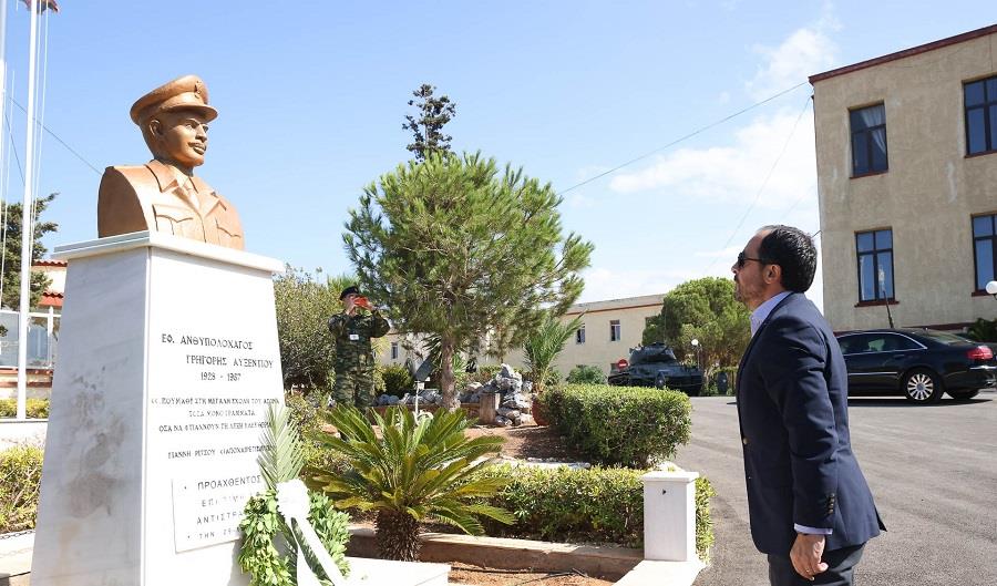Στη συνέχεια, ο Πρόεδρος της Δημοκρατίας κατέθεσε στεφάνι στο Μνημείο αφιερωμένο στον Γρηγόρη Αυξεντίου.