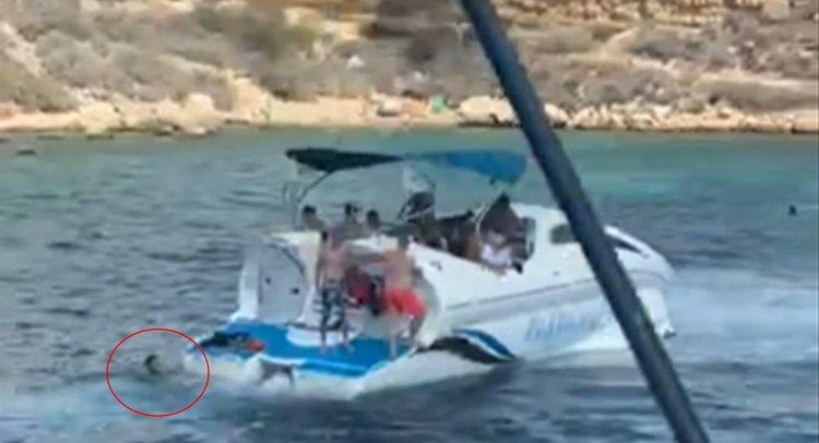 Το βίντεο, που αναρτήθηκε στα μέσα κοινωνικής δικτύωσης, απεικονίζει σκάφος να κάνει όπισθεν, επιχειρώντας να κτυπήσει πρόσωπο το οποίο είναι στο νερό.