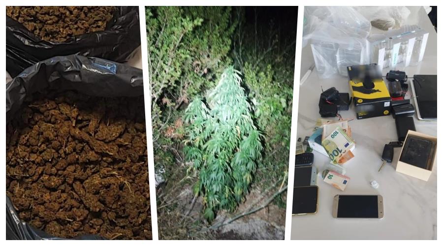 Η επιχείρηση αποκάλυψε πάνω από 7 κιλά κάνναβης, 16 δενδρύλλια ύψους 1,80 μ., αλλά και βαρύ οπλισμό, ηλεκτρονικές συσκευές παρακολούθησης, 8 οχήματα και μετρητά άνω των 7.600 ευρώ.