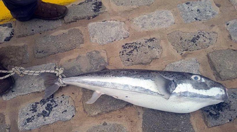 Ένας τεράστιος λαγοκέφαλος που φτάνει περίπου το μισό μέτρο σε μήκος, αλιεύτηκε στο λιμάνι του Ηρακλείου.