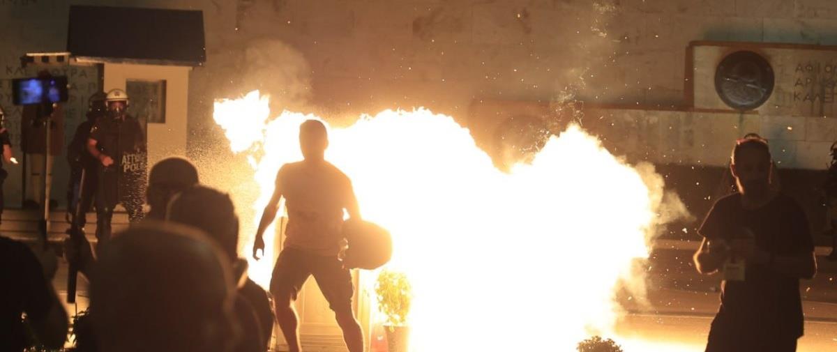 Χειροβομβίδες κρότου λάμψης και μολότοφ έπεσαν στη συγκέντρωση για τα Τέμπη, έξω από τη Βουλή, την ώρα που ο κόσμος αποχωρούσε.