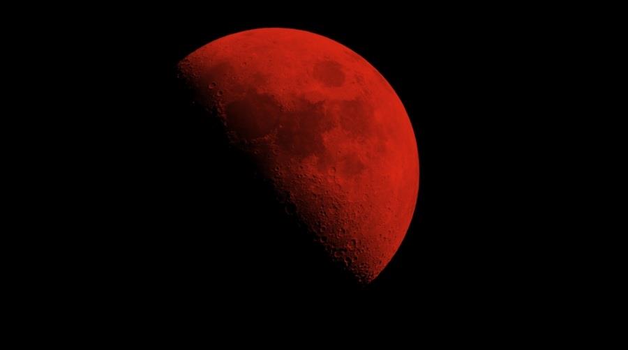 Η σεληνιακή έκλειψη συμβαίνει όταν η γη περνάει ακριβώς ανάμεσα στον ήλιο και τη σελήνη ρίχνοντας τη σκιά της στην επιφάνεια της σελήνης. Κατά τη διάρκεια μιας ολικής σεληνιακής έκλειψης, η σελήνη αποκτά βαθύ κόκκινο ή χαλκί χρώμα, γι αυτό ονομάζεται «ματωμένο φεγγάρι».