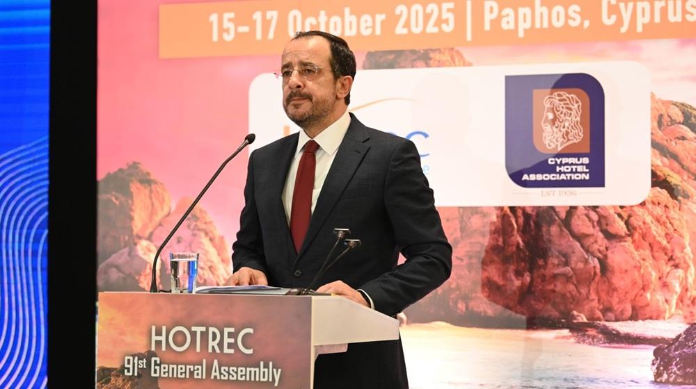 Η Κυπριακή Προεδρία του Συμβουλίου της Ε.Ε. θα οικοδομήσει επί της ευρωπαϊκής ατζέντας για τον Τουρισμό 2030 και θα διερευνήσει την προοπτική για νέους ορίζοντες στον τομέα αυτό, είπε σήμερα ο Πρόεδρος της Δημοκρατίας, Νίκος Χριστοδουλίδης, ο οποίος χαιρέτισε την 91η Γενική Συνέλευση του Συνδέσμου HOTREC (Ξενοδοχείων, Εστιατορίων και Καφέ) της Ευρώπης, που πραγματοποιείται στην Πάφο.