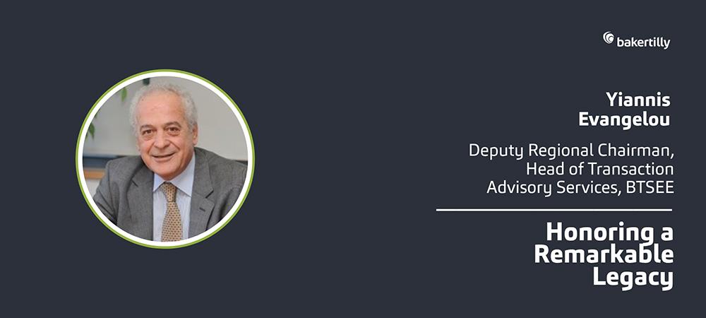Η Baker Tilly South East Europe τιμά τη μνήμη και τη σημαντική προσφορά του Γιάννη Ευαγγέλου, Αναπληρωτή Προέδρου του Ομίλου και Επικεφαλής του Τμήματος Συμβουλευτικών Υπηρεσιών Συναλλαγών.