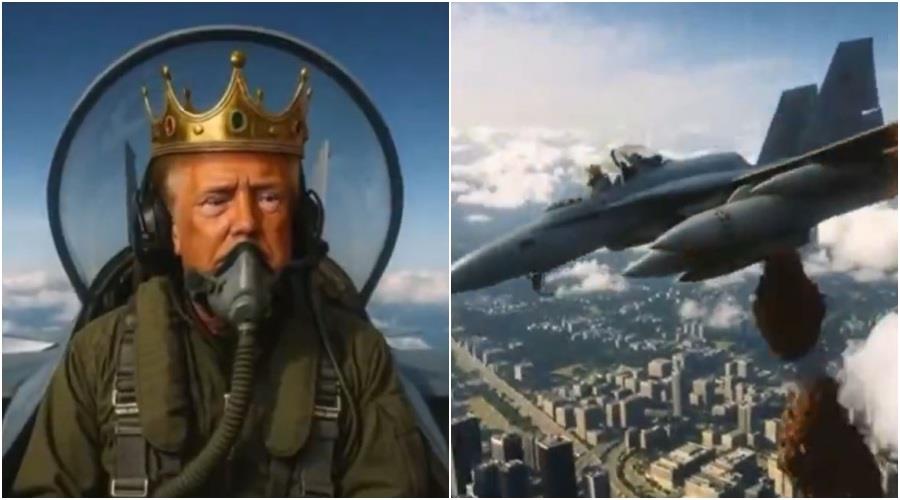 Με αφορμή, λοιπόν, τις μεγαλειώδεις κινητοποιήσεις που έγιναν χθες ενάντια στην αυταρχική διακυβέρνηση του Τραμπ από το κίνημα «No Kings», ο Αμερικανός πρόεδρος, ανέβασε χθες, Σάββατο, ένα νέο βίντεο 21 δευτερολέπτων στο Truth Social προϊόν τεχνητής νοημοσύνης με πρωταγωνιστή τον ίδιο ως βασιλιά να πετά ένα μαχητικό αεροσκάφος και να βομβαρδίζει τους διαδηλωτές με περιττώματα.
