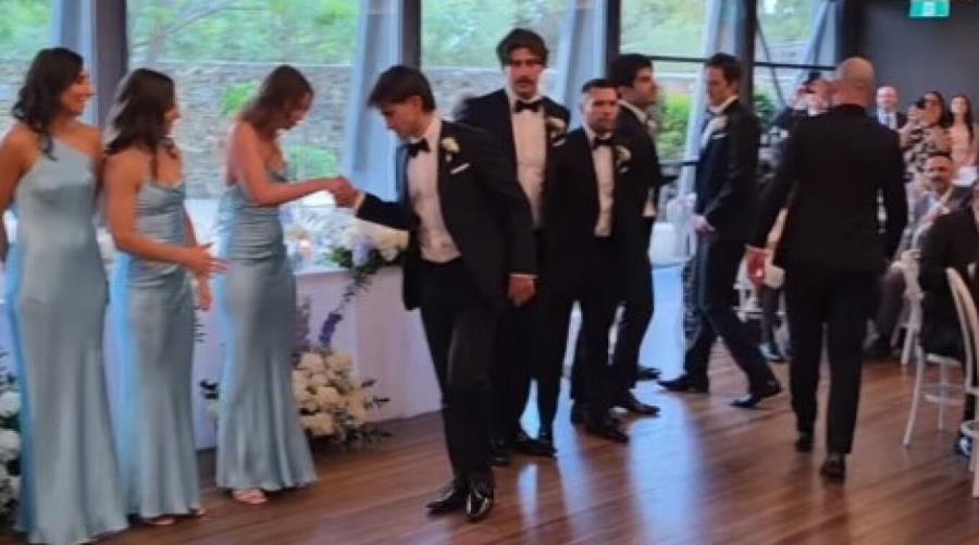 Ωστόσο αυτό που συνέβη στην Αδελαΐδα, όπου το soccer δεν είναι και το πλέον δημοφιλές άθλημα, δεν έχει προηγούμενο, καθώς ο γαμπρός και οι ποδοσφαιρόφιλοι φίλοι του άφησαν τους πάντες άφωνους κατά την είσοδο τους στο Εθνικό Κέντρο Οίνου της πόλης της Αυστραλίας, όπου φιλοξενήθηκε η δεξίωση