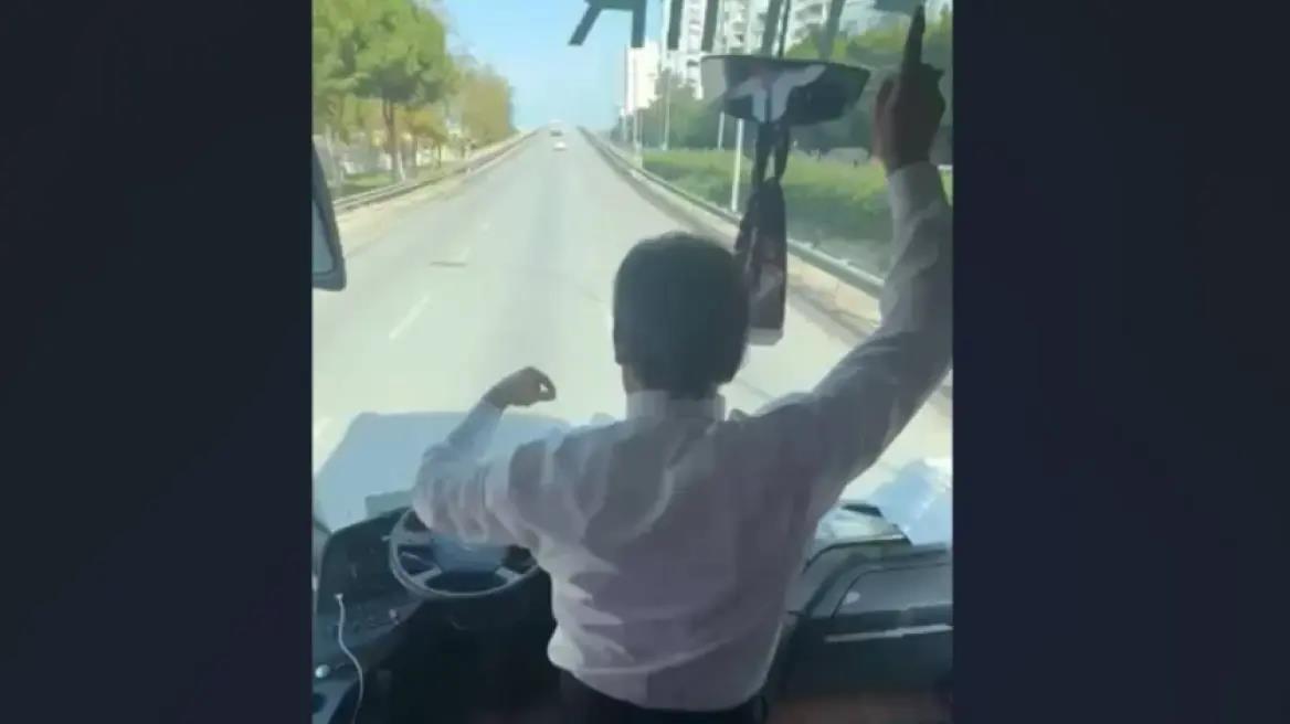 Στο βίντεο από το ταξίδι των φιλάθλων της Αντάλιασπορ με προορισμό το Ικόνιο, φαίνεται ο οδηγός να έχει σηκωθεί από το κάθισμά του και να χορεύει ενώ το λεωφορείο κινείται με ταχύτητα.