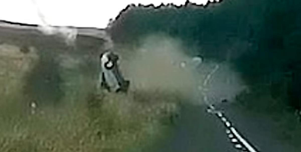 Σοκαριστικό βίντεο δείχνει τον οδηγό ενός αυτοκινήτου να χάνει τον έλεγχο του οχήματος το οποίο αναποδογύρισε πέντε φορές και βρέθηκε στον αέρα προτού καταλήξει ξανά στο έδαφος.