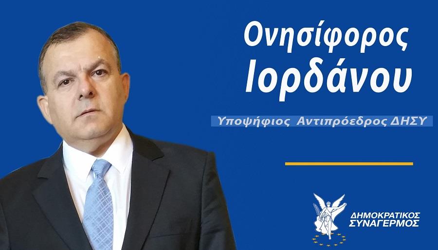 Την υποψηφιότητά του για την αντιπροεδρία του ΔΗΣΥ ανακοίνωσε το μέλος του Πολιτικού Γραφείου του κόμματος Ονησίφορος Ιορδάνου, δηλώνοντας πως πιστεύει πως μπορεί να αποτελέσει «δύναμη ενότητας, αξιοπιστίας και γνώσης» και να υπερασπιστεί υπεύθυνα τις αρχές του κόμματος και τα συμφέροντα της χώρας.