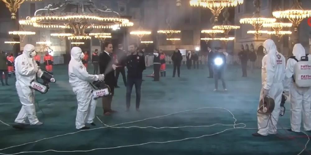 Οι δημοτικές αρχές του Δήμου Φατίχ της Κωνσταντινούπολης με αφορμή το Ραμαζάνι αποφάσισαν να κάνουν εργασίες καθαρισμούς και απολύμανσης στο εσωτερικό της Αγιάς Σοφιάς. Ωστόσο οι εικόνες που καταγράφηκαν δεν ταιριάζουν με την ιστορία του ναού της Αγίας Σοφίας.