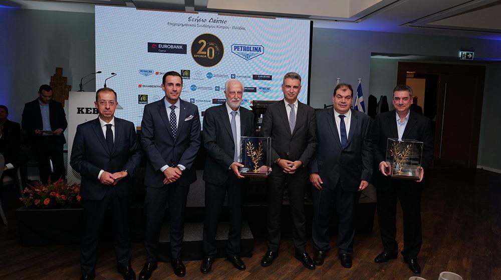 Βραβεία σε δύο εταιρείες για τις επενδύσεις τους, οι οποίες συμβάλλουν στη διεύρυνση των επιχειρηματικών σχέσεων Κύπρου-Ελλάδας, επέδωσε ο Επιχειρηματικός Σύνδεσμος Κύπρου-Ελλάδας.