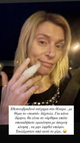 Ένα μικρό ατύχημα φαίνεται πως είχε η Ζέτα Δούκα κατά τη διάρκεια της θεατρικής παράστασης που συμμετέχει, με τη γνωστή ηθοποιό να αποκαλύπτει μέσα από ένα Instagarm story τι συνέβη.
