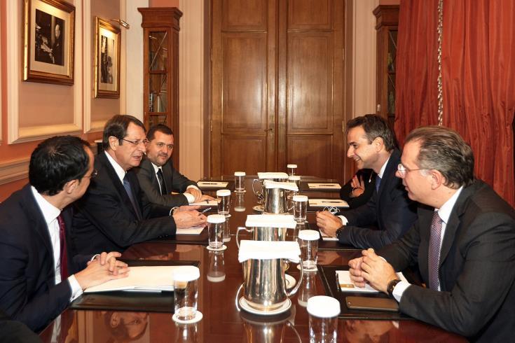 Ο Πρόεδρος Αναστασιάδης ενημέρωσε, αργά το βράδυ της Τετάρτης, μετά τις συναντήσεις που είχε με τον Έλληνα Πρωθυπουργό Αλέξη Τσίπρα και τον Πρόεδρο Προκόπη Παυλόπουλο, τον αρχηγό της αξιωματικής αντιπολίτευσης και πρόεδρο της Νέας Δημοκρατίας Κυριάκο Μητσοτάκη, ο οποίος εξέφρασε την πάγια στήριξη του κόμματός του στις προσπάθειες εξεύρεσης δίκαιης και βιώσιμης λύσης του Κυπριακού.