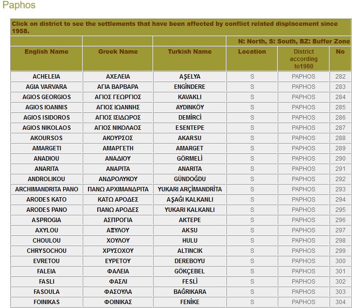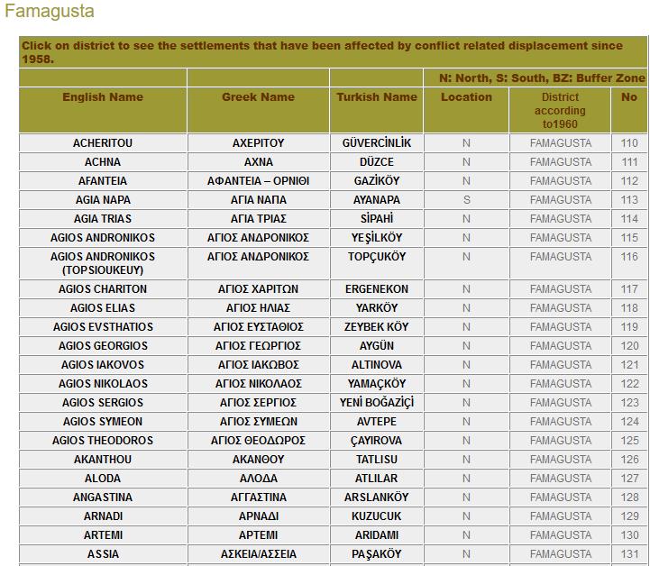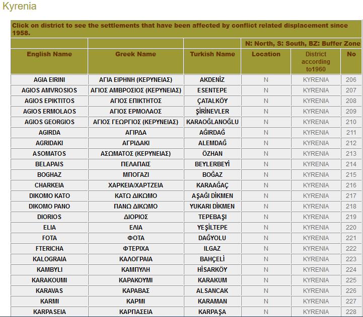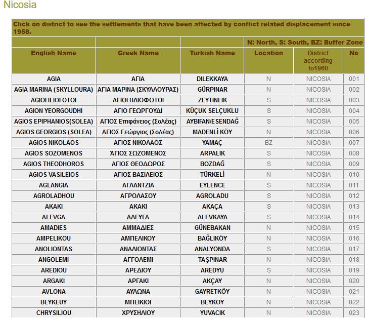 Στη σελίδα μπορεί κανείς να βρει πολλές πληροφορίες για την Κύπρο, τις πορείες των εκτοπισμών και επανεγκαταστάσεων από το 1958 μέχρι και σήμερα, βιωματικές ιστορίες αλλά και χάρτες με περισσότερες πληροφορίες για το κάθε χωριό.