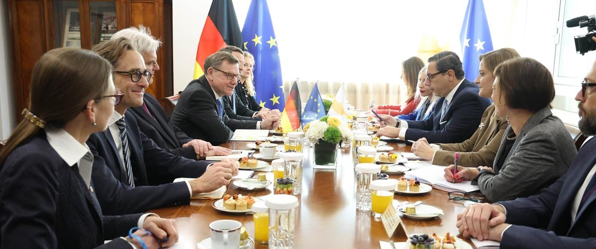 Οι δύο Υπουργοί συζήτησαν, επίσης, τις διμερείς σχέσεις Κύπρου-Γερμανίας, επιβεβαιώνοντας το πολύ θετικό επίπεδο συνεργασίας και τις προοπτικές περαιτέρω ενίσχυσής της σε τομείς όπως ο πολιτισμός, η εκπαίδευση και η ναυτιλία.