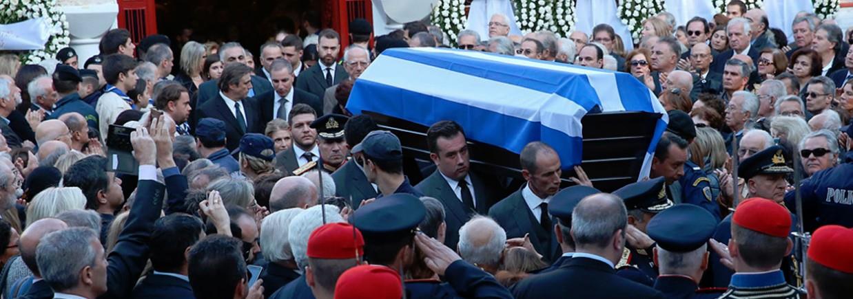 Από νωρίς στο προαύλιο του ιερού ναού υπήρχε το τιμητικό άγημα της Προεδρικής Φρουράς ενώ πλήθος κόσμου έχει ήδη συγκεντρωθεί για το τελευταίο αντίο στον «ευπατρίδη της πολιτικής».