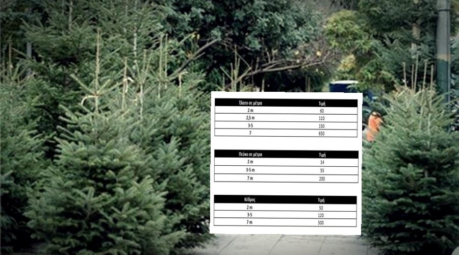 Οι τιμές πώλησης των δέντρων ποικίλουν ανάλογα με το είδος και το ύψος.
