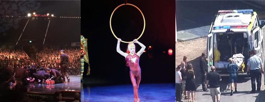 Γυμνάστρια και ακροβάτισσα του Cirque du Soleil, έπεσε από μεγάλο ύψος κατά τη διάρκεια της απογευματινής παράστασης στο Μπρισμπέιν της Αυστραλίας το απόγευμα της Κυριακής.