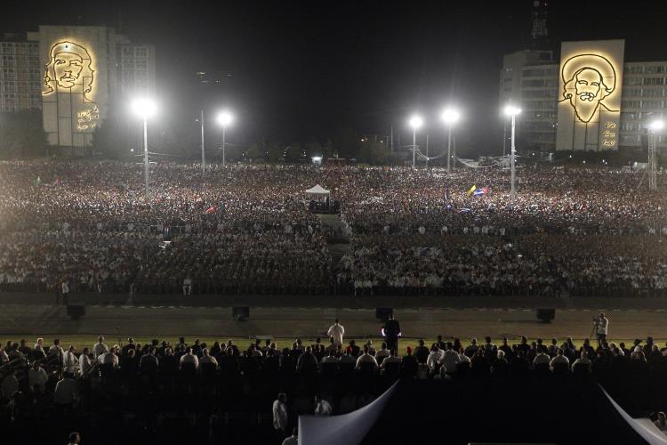 Επιφωνήματα "Βίβα Φιντέλ!" αντηχούσαν καθώς δεκάδες χιλιάδες Κουβανών συγκεντρώθηκαν στην Πλατεία της Ελευθερίας χθες για να αποτίσουν φόρο τιμής στον Κάστρο. "Ενωμένοι, ποτέ νικημένοι!" φώναζαν. Ο Ραούλ Κάστρο αγκάλιασε τον ιδεολογικό του σύμμαχο, τον Πρόεδρο της Βενεζουέλας Νικολάς Μαδούρο, καθώς εξελισσόταν η τελετή.