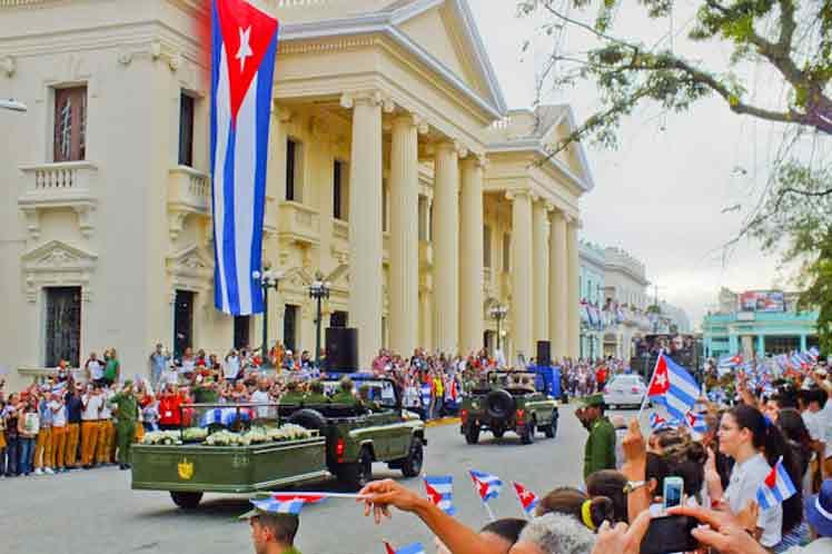 Η τέφρα του Φιντέλ Κάστρο ολοκληρώνει σήμερα το ταξίδι της στην Κούβα φθάνοντας στην κοιτίδα της κουβανικής επανάστασης, το Σαντιάγο, για μια μεγάλη τελετή στη μνήμη του εκλιπόντος ηγέτη πριν από την κηδεία του που θα πραγματοποιηθεί αύριο Κυριακή.