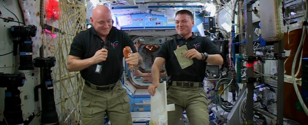 Τι κι αν βρίσκονται χιλιάδες χιλιόμετρα μακριά από τα σπίτια τους; Οι αστροναύτες του Διεθνούς Διαστημικού Σταθμού δεν έχασαν την ευκαιρία να γιορτάσουν την Ημέρα των Ευχαριστιών, τρώγοντας -έστω και κατεψυγμένη- γαλοπούλα, όπως επιτάσσει το έθιμο.