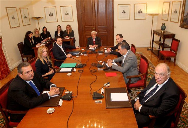 Σημεία σύγκλισης (κυρίως στο προσφυγικό), διαφωνίες (ιδίως στο ασφαλιστικό) και μία αναφορά σε αλλαγή εκλογικού νόμου, με την οποία διαφωνεί η Νέα Δημοκρατία, περιλαμβάνει το κείμενο στο οποίο κατέληξε το συμβούλιο των πολιτικών αρχηγών.