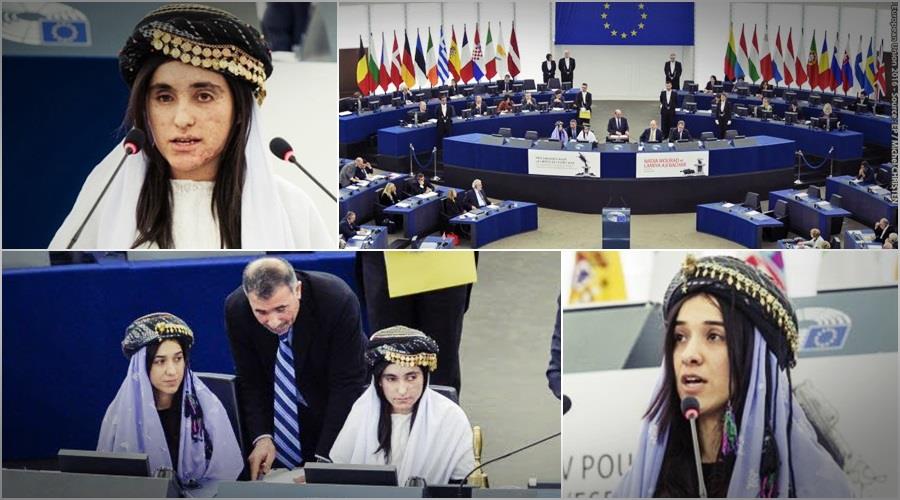 Δυο ζευγάρια μάτια γεμάτα πόνο μα και ελπίδα. Αυτό ήταν το πρώτο πράγμα που ξεχώρισα, αντικρίζοντας σήμερα για πρώτη φορά από κοντά τη Νάντια Μουράτ και τη Λαμίγια Χατζι Μπασάρ στην έδρα του Ευρωπαϊκού Κοινοβουλίου στο Στρασβούργο λίγο πριν τιμηθούν με το βραβείο Ζαχάρωφ ως αγωνίστριες κατά του Ισλαμικού Κράτους και της γενοκτονίας που έχει εξαπολύσει κατά των Γεζίντι.