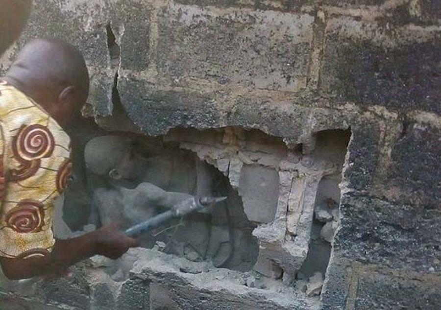 Και ο μικρός σώθηκε από τους γείτονες, που τον άκουσαν το βράδυ να τραγουδά! Η αστυνομία έσπασε τον τοίχο και απελευθέρωσε το άτυχο παιδάκι.