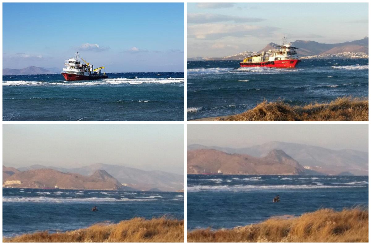 Εξάλλου είναι αδύνατον να προσεγγίσουν το πλοίο οι ελληνικές αρχές με σκάφος, με αποτέλεσμα να μην είναι ακόμα γνωστό το τι μεταφέρει. Ο Καπετάνιος πάντως του πλοίου συνεργάζεται με τις ελληνικές αρχές, ενημερώνοντας ότι μεταφέρει σκάλες και άλλα υλικά. Νωρίτερα ο Καπετάνιος είχε ζητήσει να έρθει ρυμουλκό από την Τουρκία κάτι που δεν επιτρέπεται λόγω των διεθνών κανονισμών.