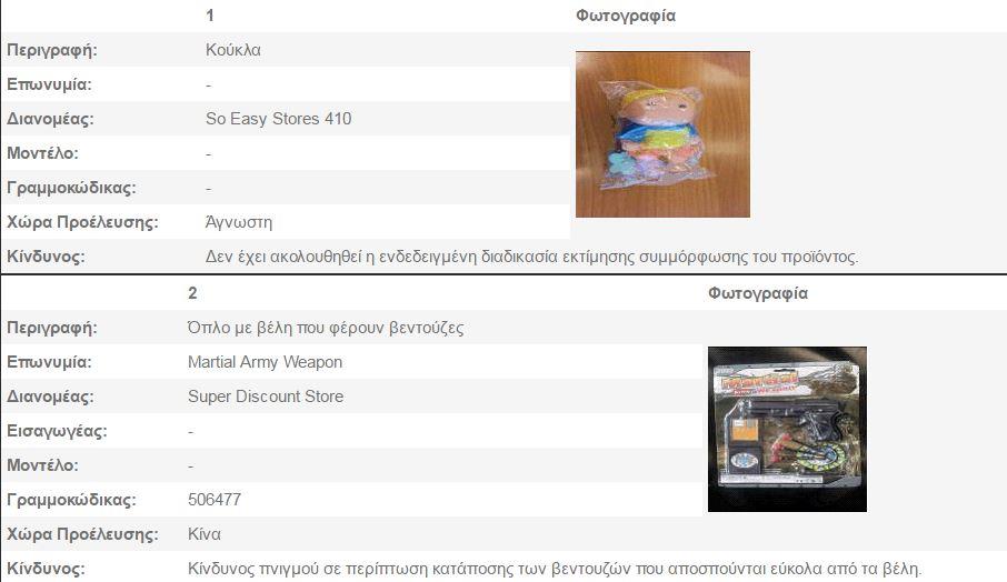 Σύμφωνα με ανακοίνωση, η Υπηρεσία Προστασίας Καταναλωτή, ενεργώντας ως η αρμόδια αρχή για την εφαρμογή των περί της Γενικής Ασφάλειας των Προϊόντων Νόμων και των περί των Βασικών Απαιτήσεων που πρέπει να πληρούν Καθορισμένες Κατηγορίες των Προϊόντων Νόμων, κατά τους μήνες Νοέμβριο και Δεκέμβριο του 2016, προχώρησε σε απόσυρση από την κυπριακή αγορά των πιο κάτω προϊόντων: