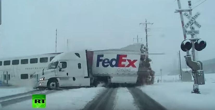Κάμερα αυτοκινήτου κατέγραψε την συγκλονιστική στιγμή κατά την οποία ένα επιβατηγό τρένο συγκρούεται με νταλίκα γνωστής μεταφορικής εταιρείας, στη Γιούτα των Ηνωμένων Πολιτειών της Αμερικής.