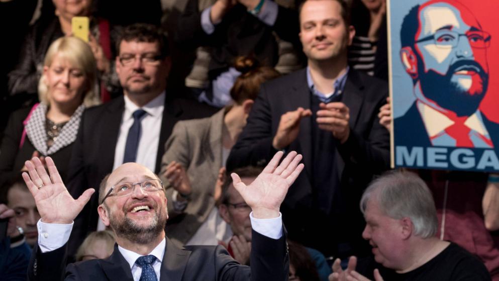 Μετά την ανακοίνωση την υποψηφιότητας του Μάρτιν Σουλτς για την καγκελαρία στα τέλη Ιανουαρίου, η απόσταση μεταξύ των δύο κομμάτων μειώθηκε εντός μιας εβδομάδας από 14% σε 4%.