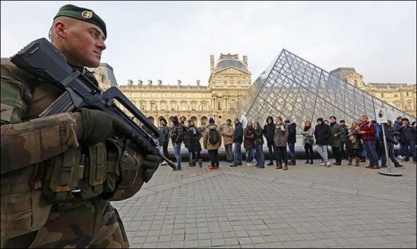 Την Παρασκευή, ένας νεαρός άνδρας, που φέρεται ότι είναι ένας 29χρονος Αιγύπτιος, επιτέθηκε με δύο ματσέτες εναντίον στρατιωτών φωνάζοντας "Αλάχου Άκμπαρ" ("Ο Θεός είναι Ύψιστος") έξω από το μουσείο του Λούβρου τραυματίζοντας τον έναν. Ο δράστης έφερε και σακίδιο, το οποίο περιείχε μπογιά σε σπρέι αλλά όχι εκρηκτικά, σύμφωνα με την αστυνομία.