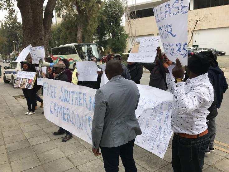 Η κοινότητα των Καμερουνέζων στην Κύπρο πραγματοποίησε το πρωί εκδήλωση διαμαρτυρίας.
