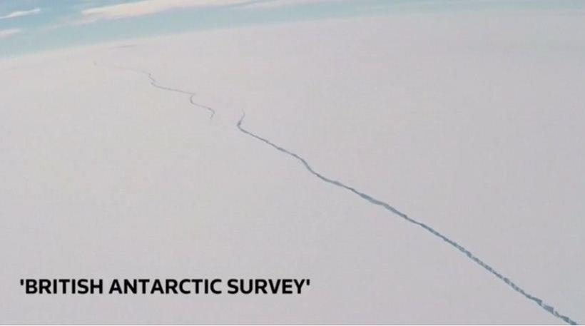 Ειδικό Drone κατέγραψε από αέρα το τεράστιο ρήγμα, το οποίο εκτείνεται σε πολλά μίλια απόσταση. Το τελευταίο διάστημα έχει σημειωθεί μία ραγδαία αύξηση στην ταχύτητα αποκόλλησης. Βάσει υπολογισμών, το γιγαντιαίο παγόβουνο θα αποκολληθεί τους αμέσους επόμενους μήνες και ιδιαίτερα το αργότερο έως τα τέλη Απριλίου.