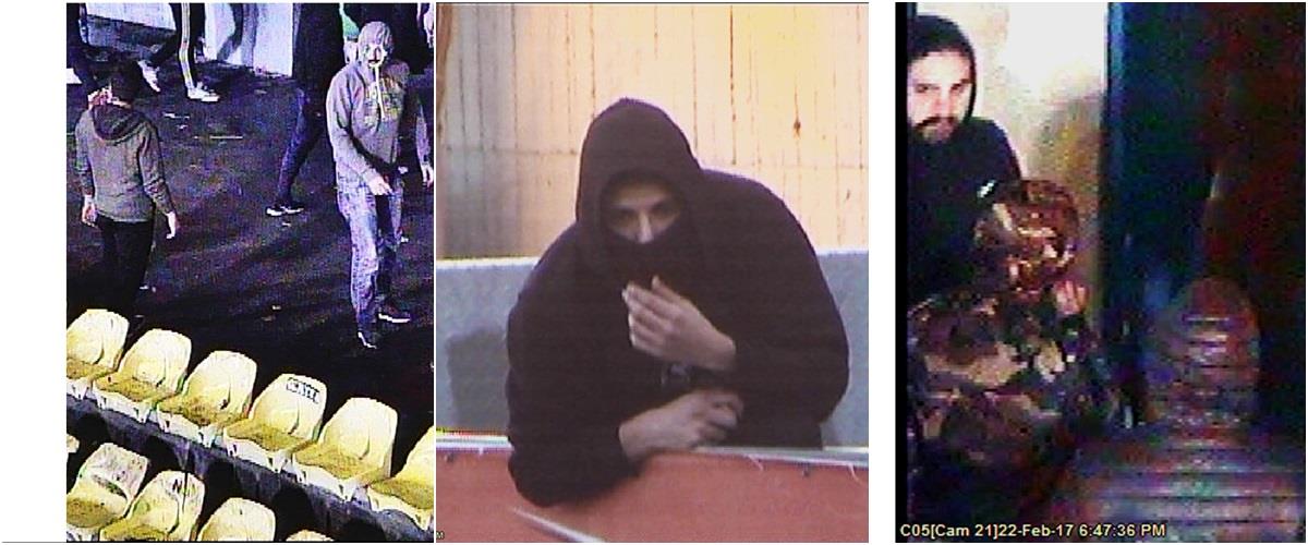 Η Αστυνομία αναζητεί τα πρόσωπα που απεικονίζονται στις φωτογραφίες για διευκόλυνση των ανακρίσεων, σε σχέση με υπόθεση οχλαγωγίας, βίας στα γήπεδα και πρόκλησης κακόβουλης ζημιάς, αδικήματα που διαπράχθηκαν κατά τον ποδοσφαιρικό αγώνα ΑΠΟΛΛΩΝ – ΟΜΟΝΟΙΑΣ που διεξήχθη την Τετάρτη 22 Φεβρουαρίου, 2017 στο Τσίρειο Στάδιο.