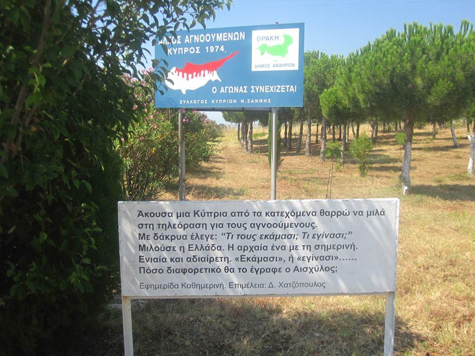 Πέρα από το Μουσείο στην περιοχή της Ξάνθης θα συναντήσει κανείς άλλο ένα έργο που έγινε με πρωτοβουλία του Συνδέσμου των Κυπρίων της περιοχής. Πρόκειται για το άλσος των αγνοουμένων της Κυπριακής εισβολής που βρίσκεται στο Δήμο Αβδήρων.