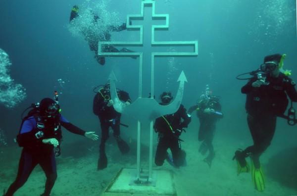 Δύτες στην Κριμαία προχώρησαν στην ανέγερση ενός μεγάλου σταυρού σε σχήμα άγκυρας στα ανοικτά των ακτών της Κριμαίας. Οι υπεύθυνοι υπόσχονται πως είναι η αρχή για μια υποβρύχια εκκλησία. Ο σταυρός τριών τόνων είναι μόνο η αρχή ενός φιλόδοξου σχεδίου από τον Αρχιμανδρίτη Τύχων.